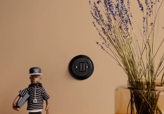 Lichtschalter 02 - 2-fach Lichtschalter aus Porzellan - Schwarz