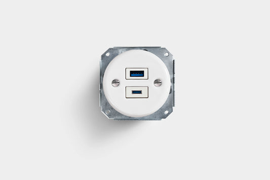 USB-A/ USB-C Dose aus Porzellan in Weiss